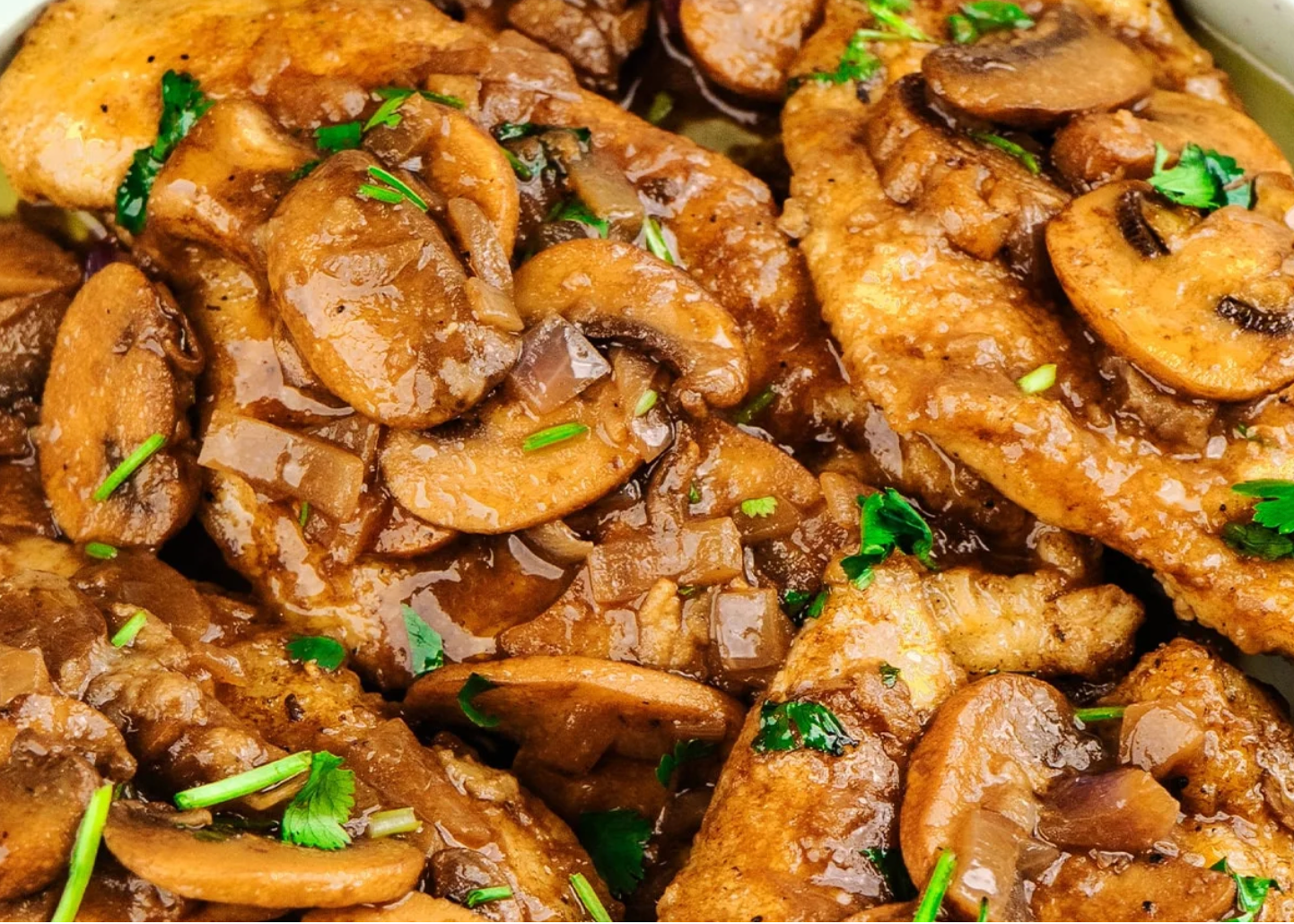 A perennial favorite for good reason, this dish boasts golden skinless, boneless chicken breasts, mushrooms and shallots bathed in a delicious marsala wine sauce. Served over a bed of egg noodles.